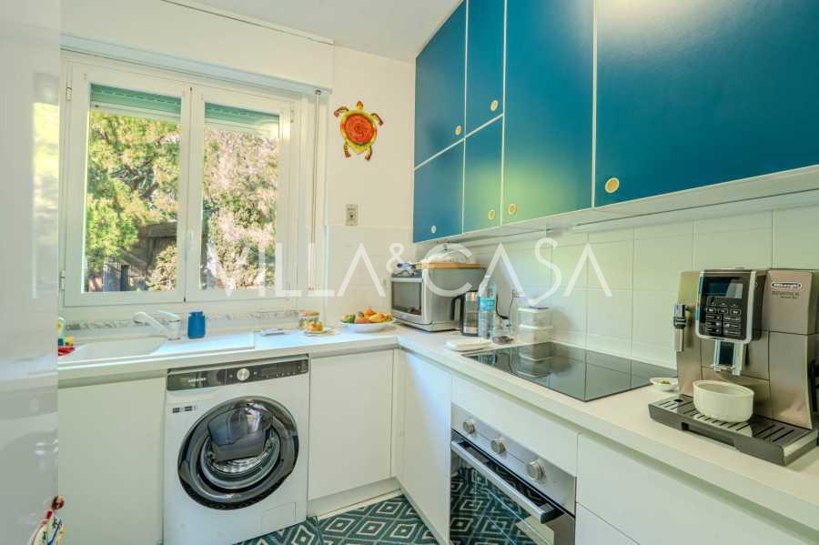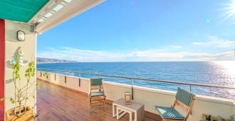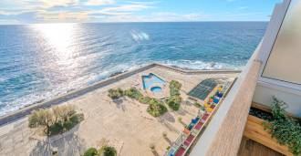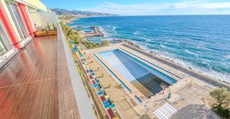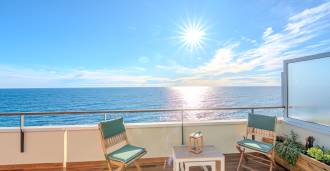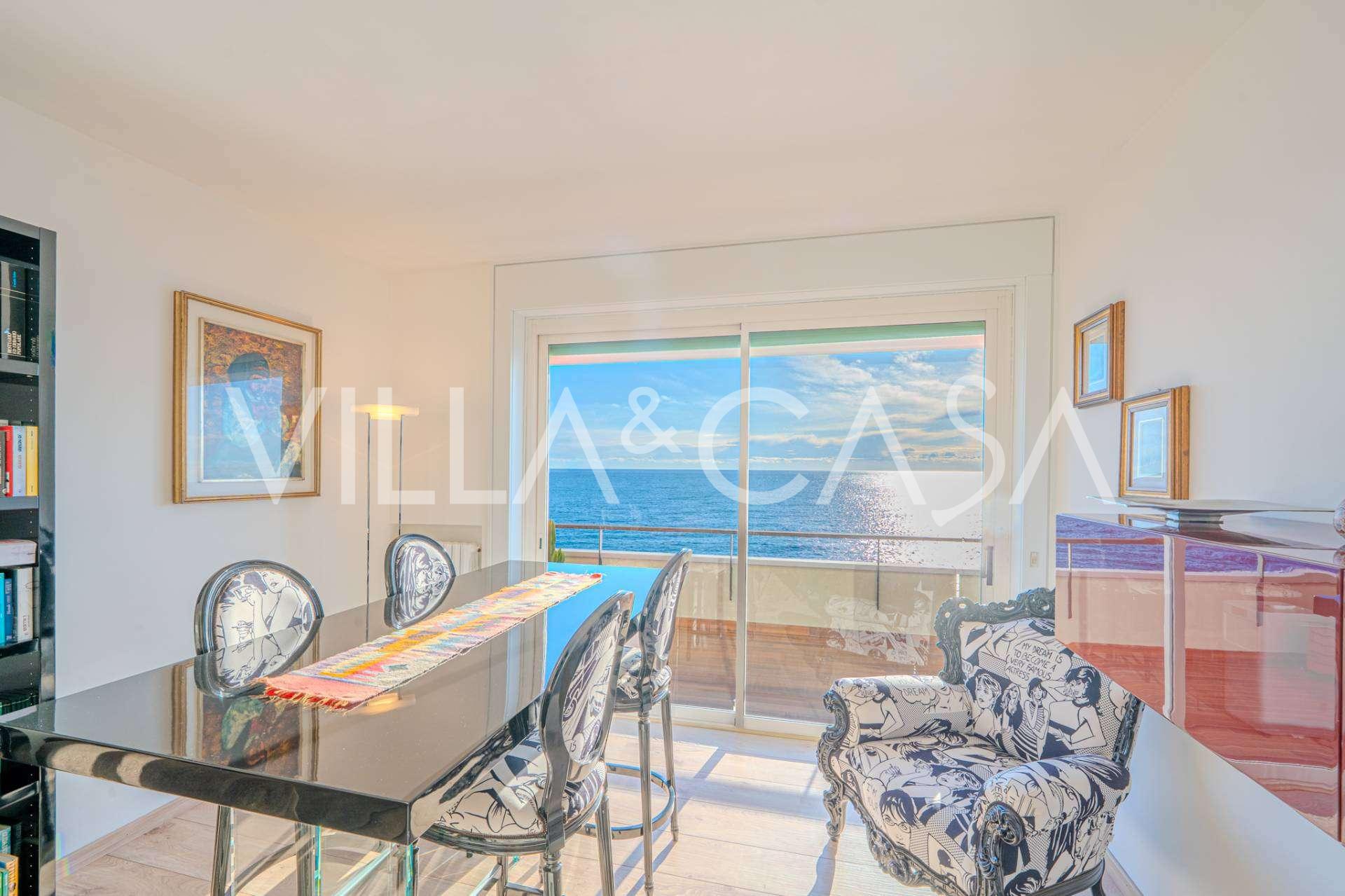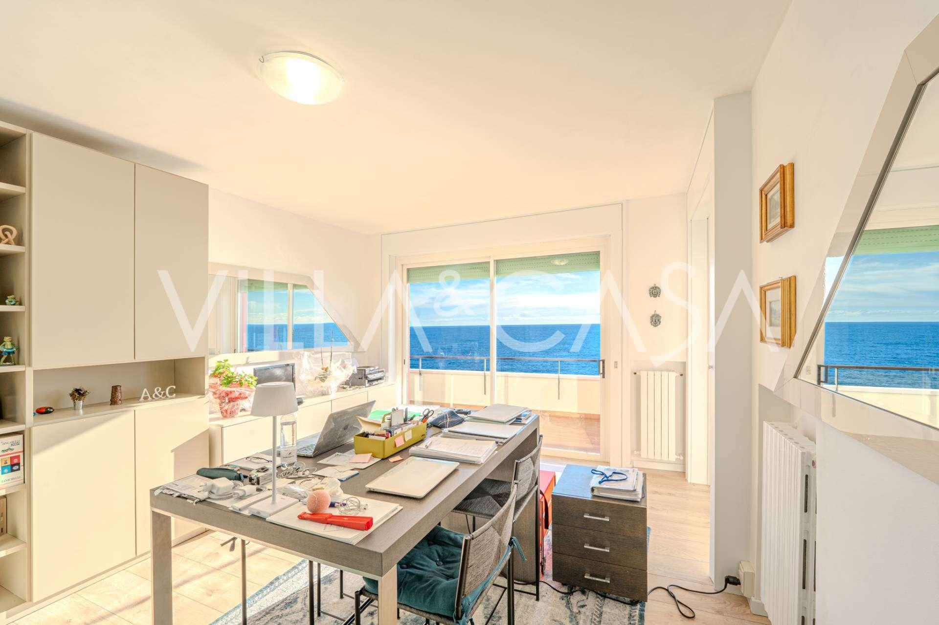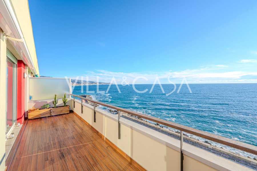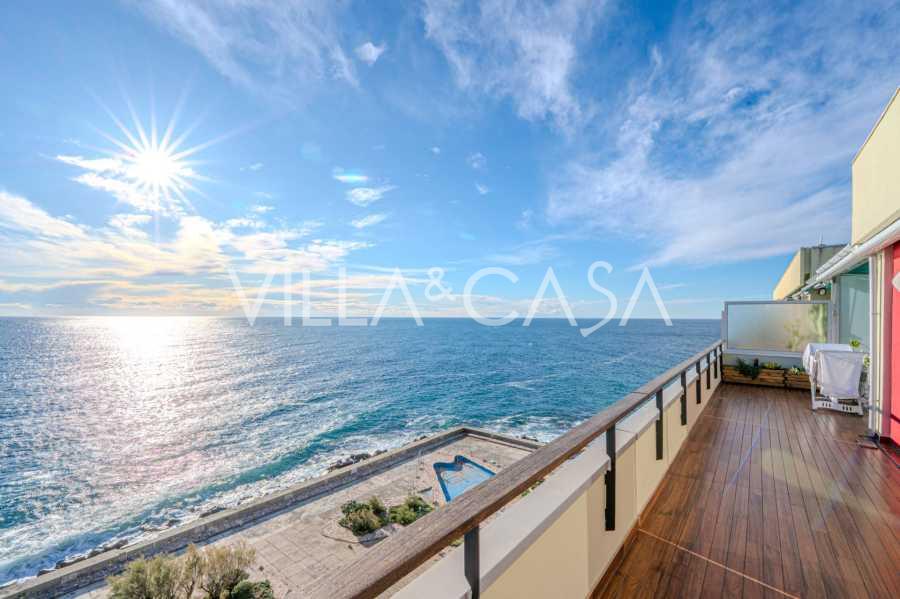 Ein Penthouse mit einer geräumigen Terrasse von 143 m² (123 m² Wohnfläche + 20 m² Garage) direkt am Meer wird angeboten. Das elegante Penthouse, das 2023 komplett renoviert wurde, befindet sich im 5. Stock eines Gebäudes mit Concierge. Die Wohnung ist nach Südosten ausgerichtet und verfügt über eine große Terrasse, die eine helle und gemütliche Atmosphäre schafft.