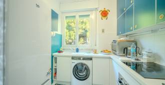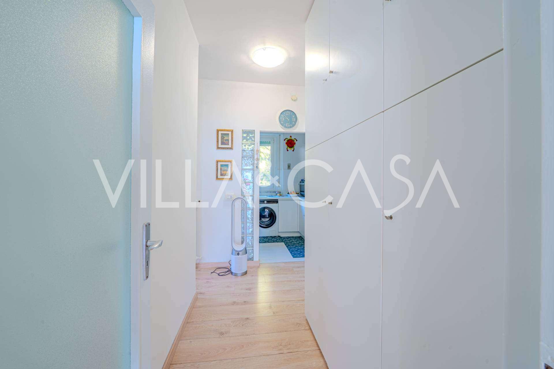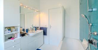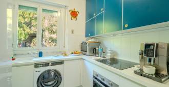 Die Aufteilung umfasst: ein Wohnzimmer, ein Arbeitszimmer, zwei Schlafzimmer, von denen eines Meerblick bietet, eine Küche mit Essbereich, zwei Badezimmer mit Fenstern, einen Flur und einen Korridor. Autonome Heizung, Möglichkeit zur Installation einer Klimaanlage, Garagenbox von 20 m² mit einer Deckenhöhe von 3,50 m und der Möglichkeit, ein Zwischengeschoss zu schaffen, geräumige Terrasse zur Erholung. Es gibt keinen Keller, aber die Garage kompensiert die Lagerung. Die Nebenkosten betragen 2000 € pro Jahr.