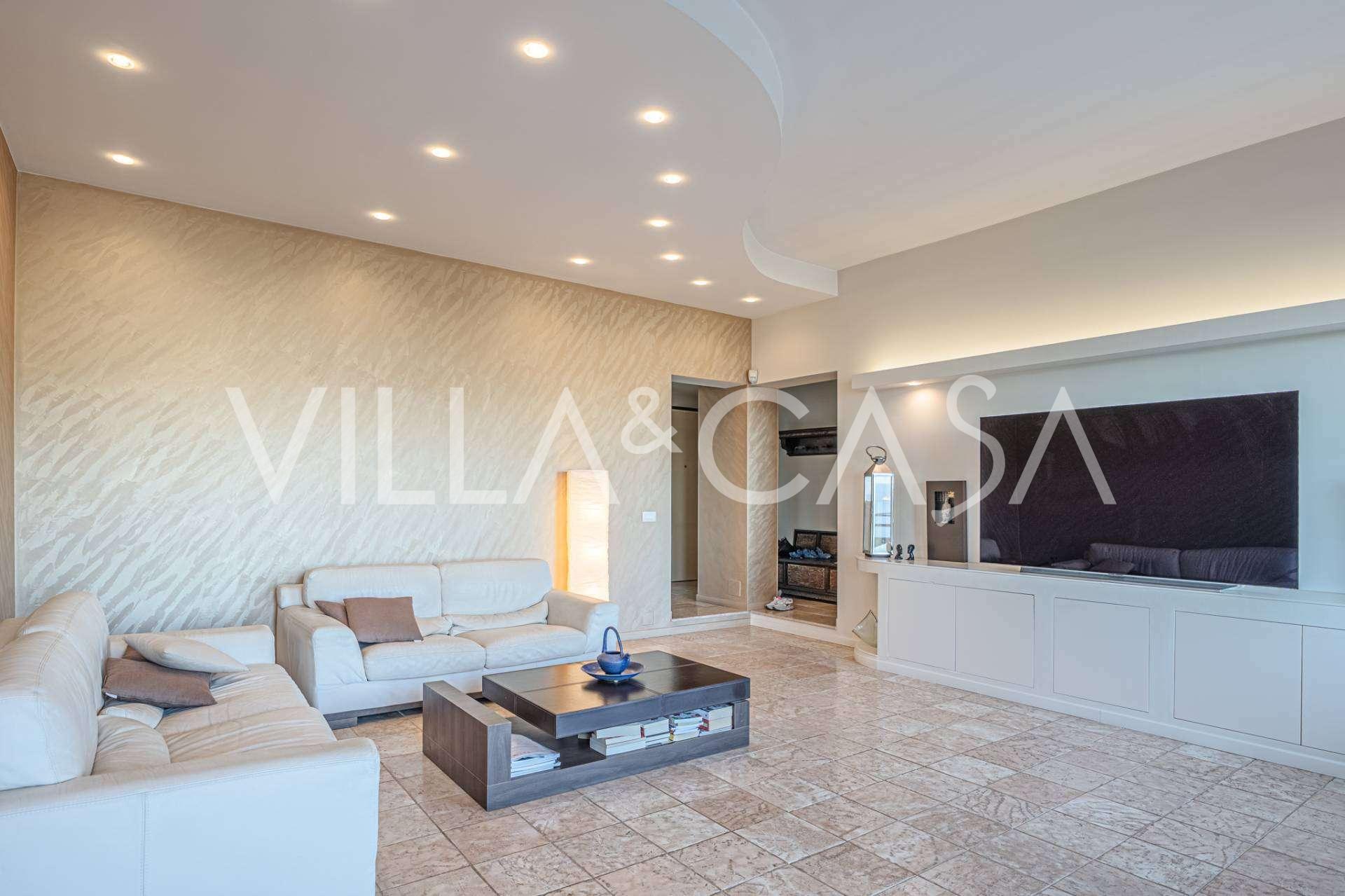 Zum Verkauf steht eine prächtige Wohnung mit einer Fläche von 161 m² und atemberaubendem Meerblick. Sie befindet sich im unteren Stockwerk einer eleganten privaten Villa mit Pool und bequemen Parkmöglichkeiten.