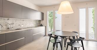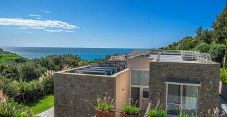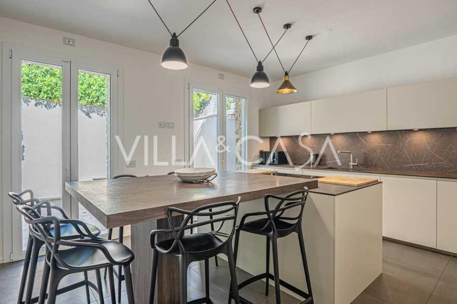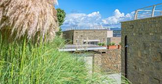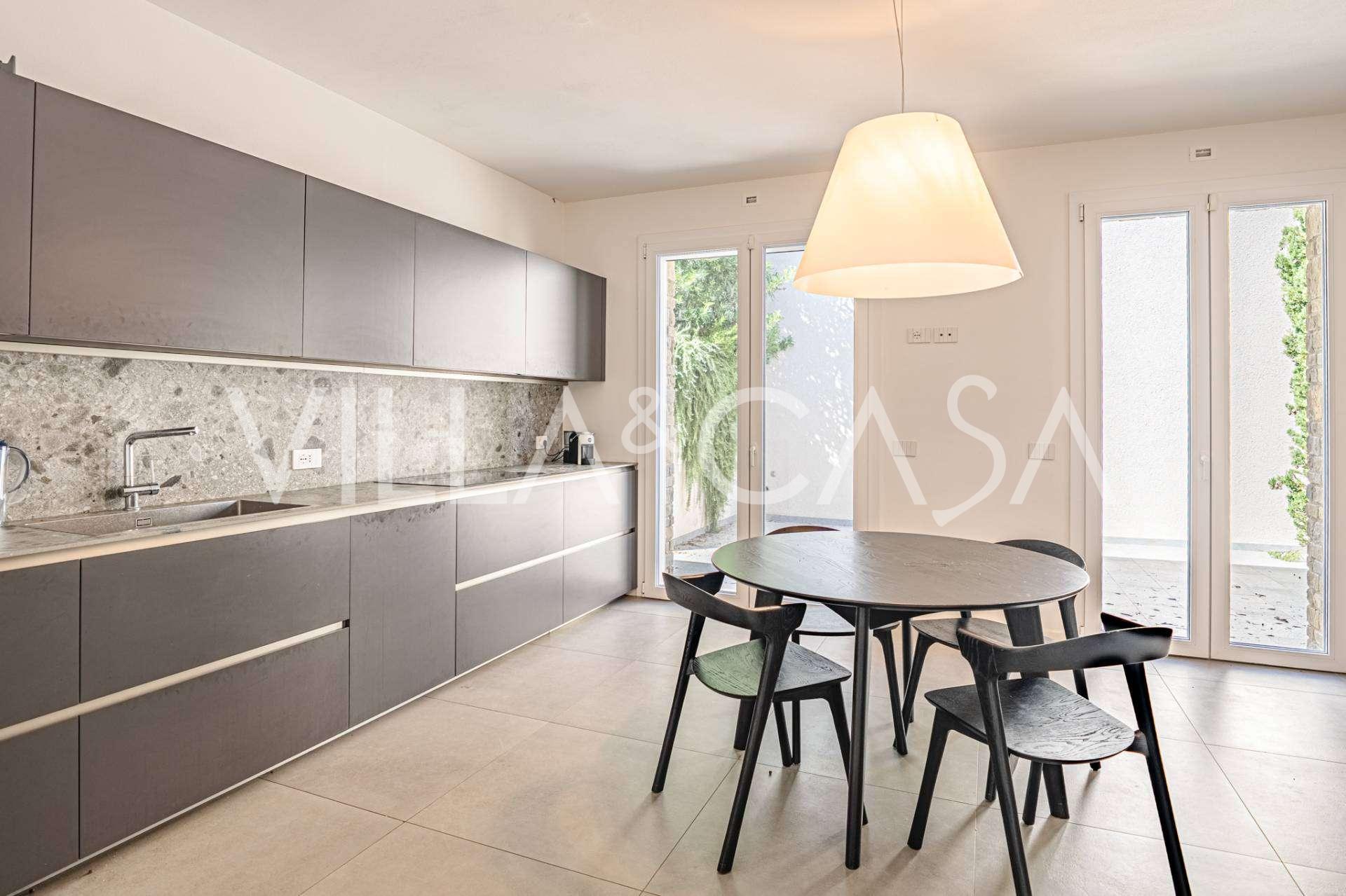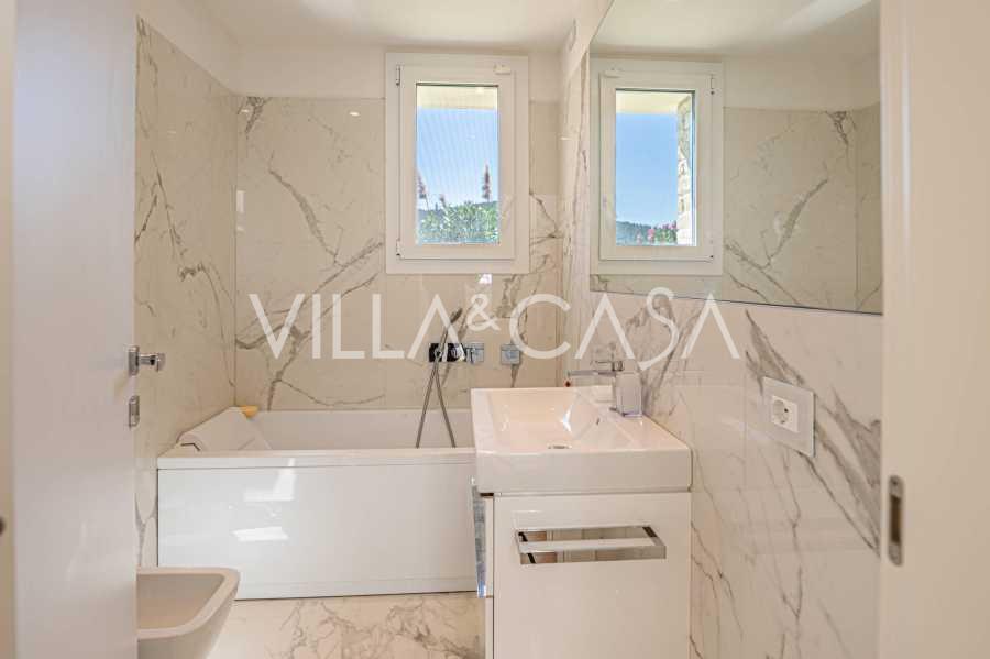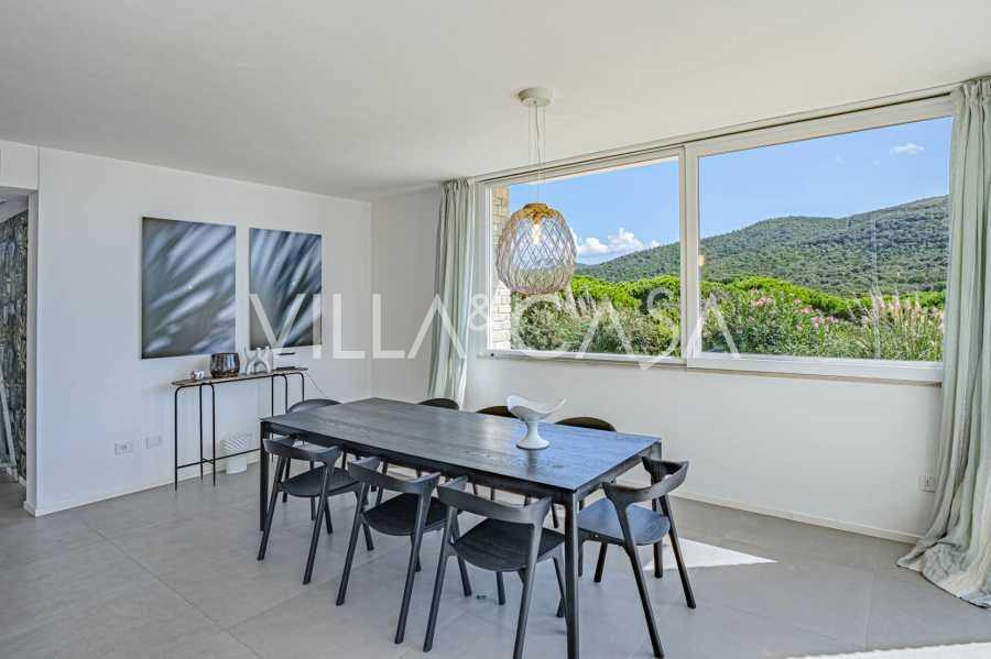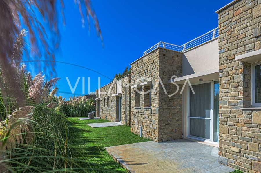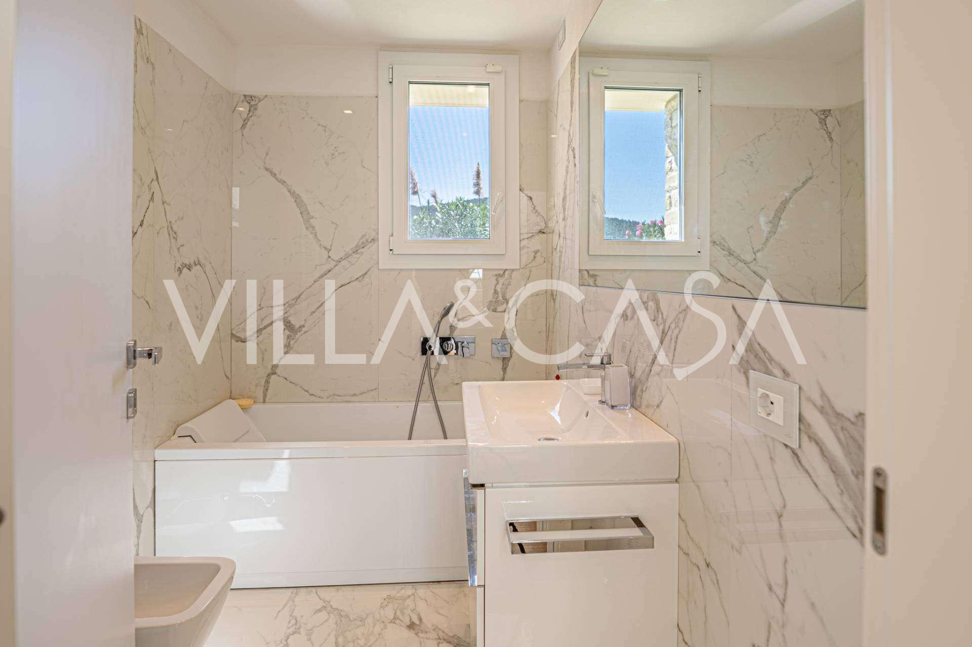 Auf der unteren Ebene, im eleganten Sockelgeschoss, befinden sich geräumige Terrassen mit Blick auf das Meer von Punta Ala, die für maximale Nutzung des Tageslichts entworfen wurden und eine gemütliche Atmosphäre in jedem Raum schaffen.