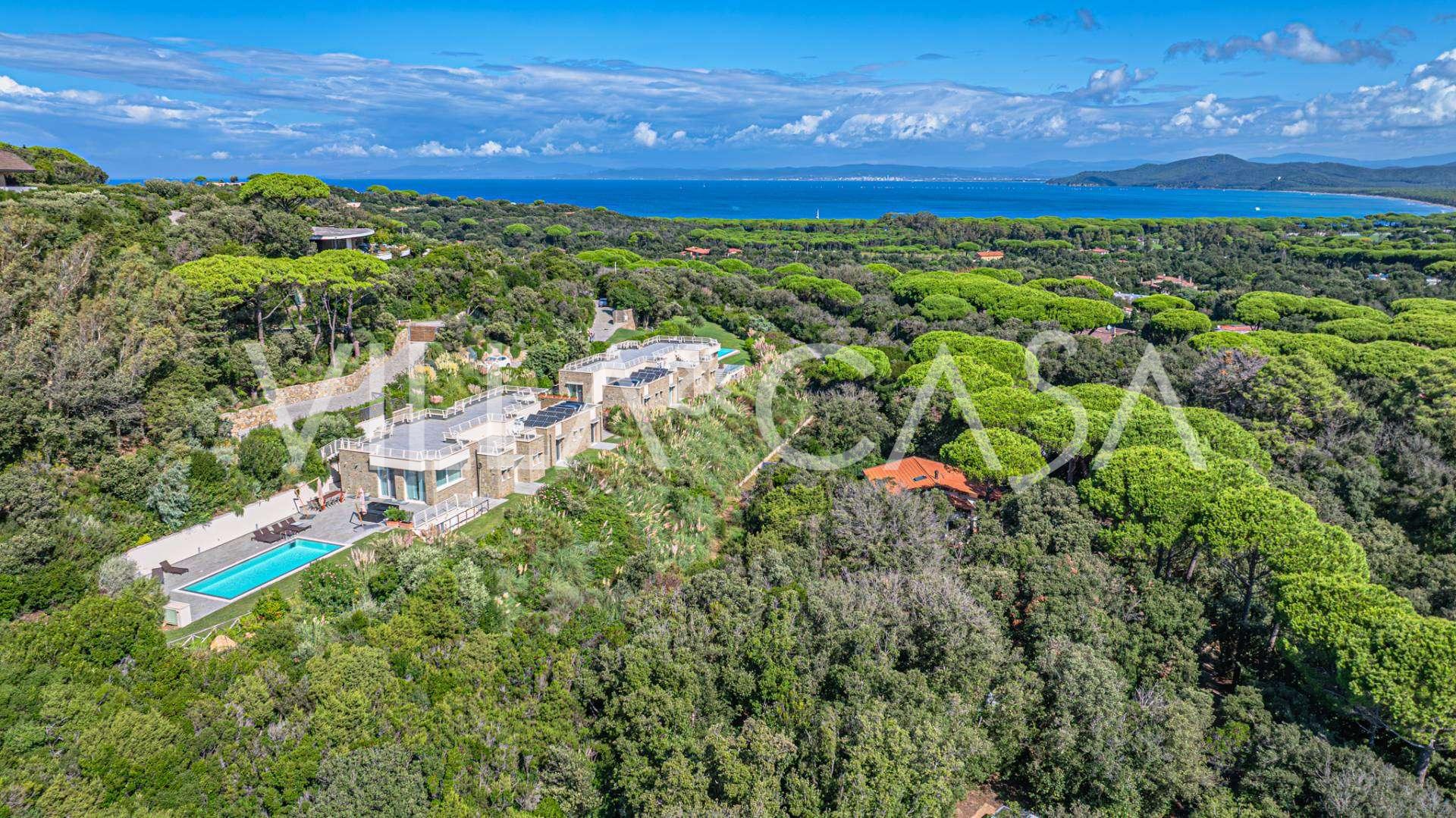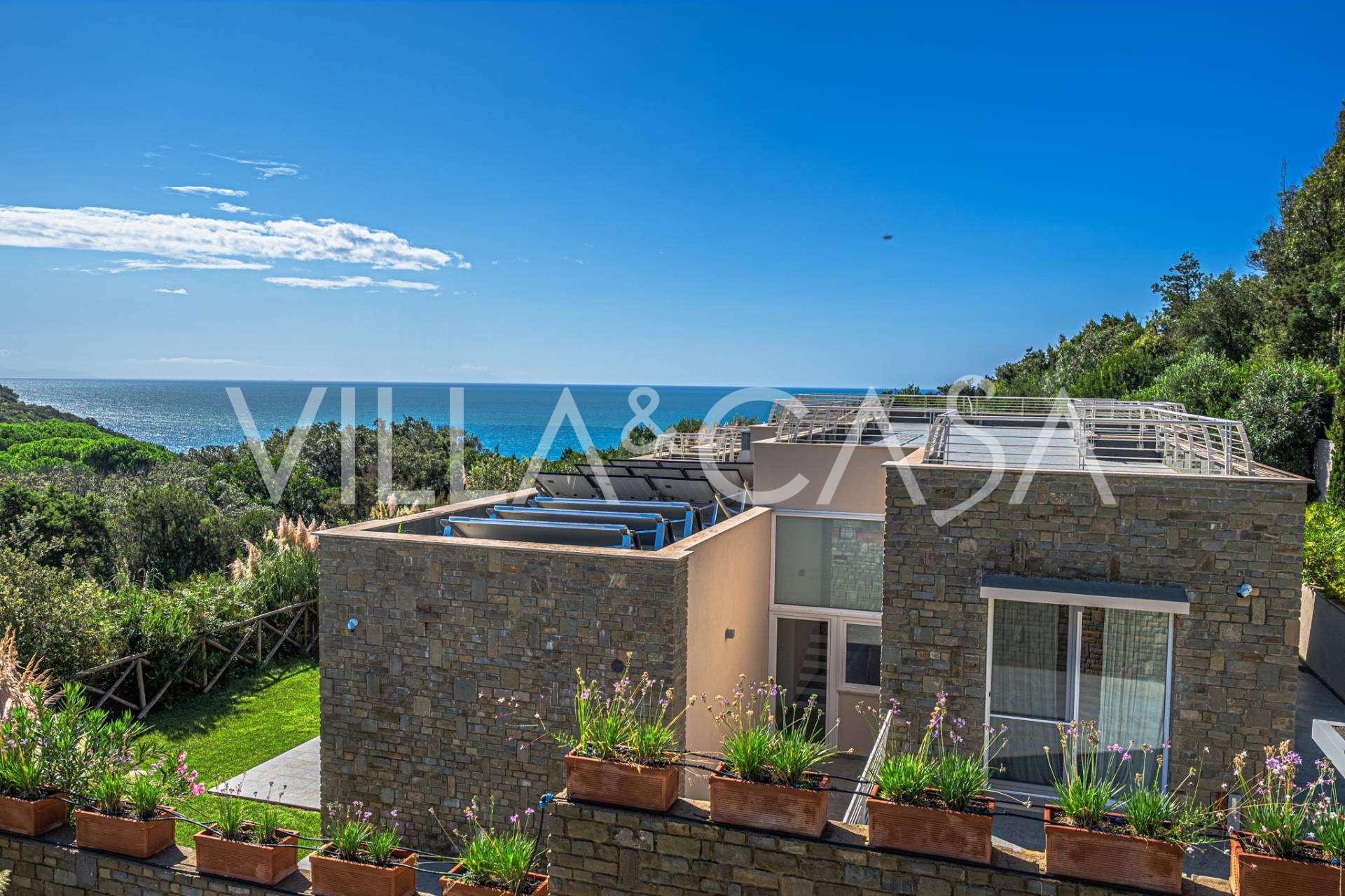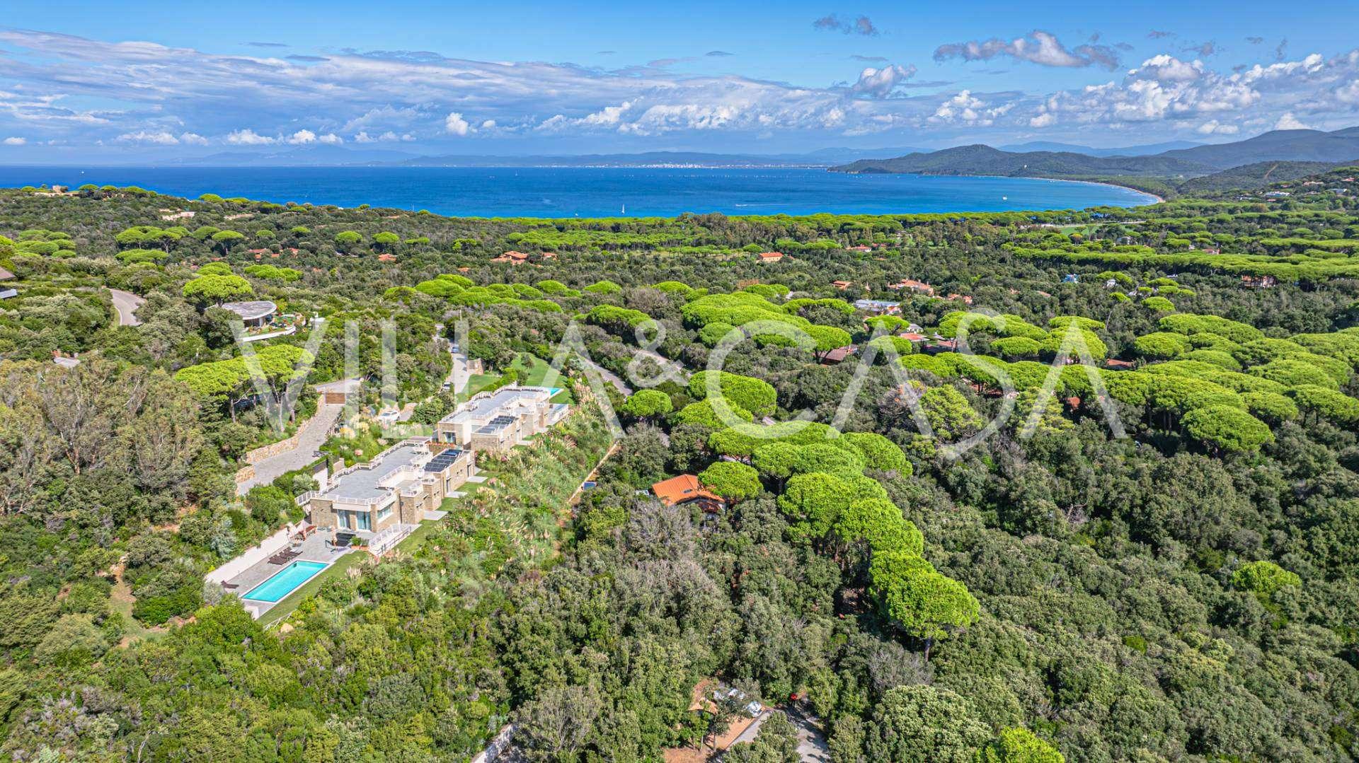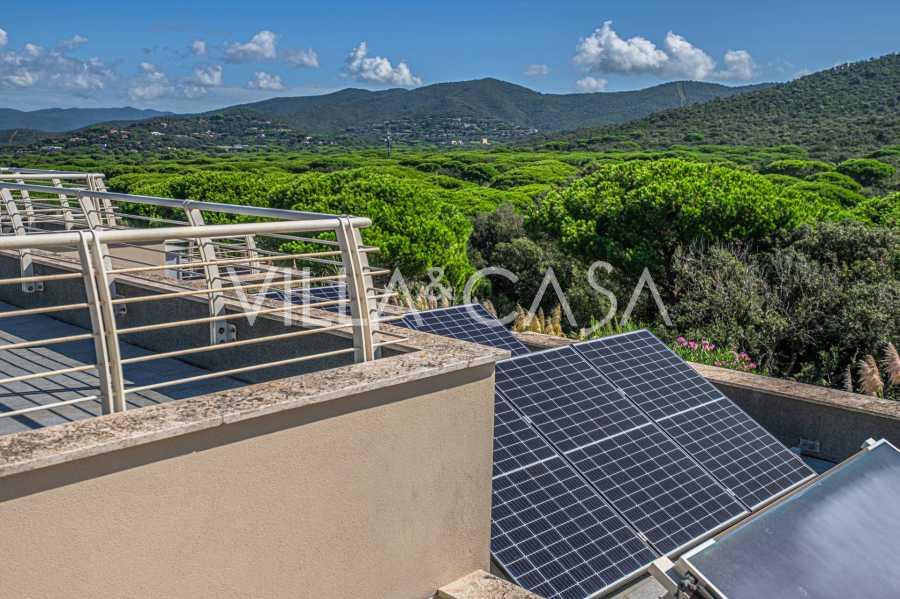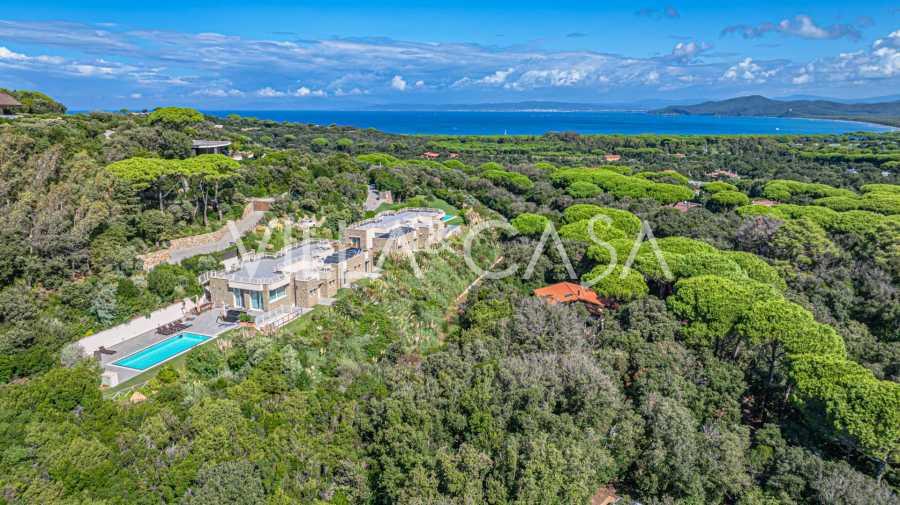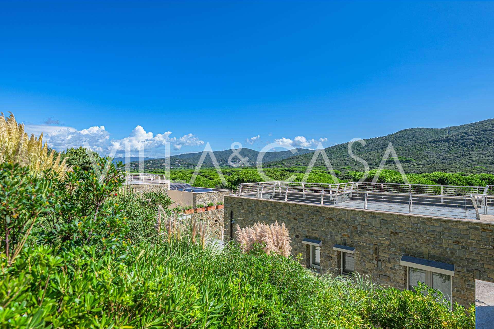 Diese bemerkenswerte Villa, die kürzlich in der prestigeträchtigen Zone Poggettone in Punta Ala erbaut wurde, vereint auf einzigartige Weise moderne Architektur, Natur und innovative Technologien. Die Villa hat eine Fläche von etwa 300 Quadratmetern und ist von einem privaten Park von 4000 Quadratmetern umgeben, mit einem atemberaubenden Panoramapool. Das Anwesen ist ein wahres Juwel der Luxusimmobilien im Herzen der toskanischen Maremma.
