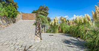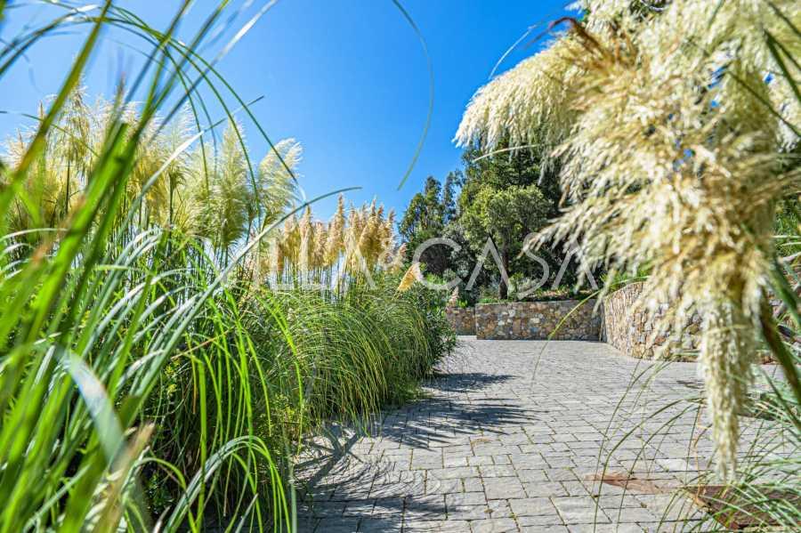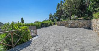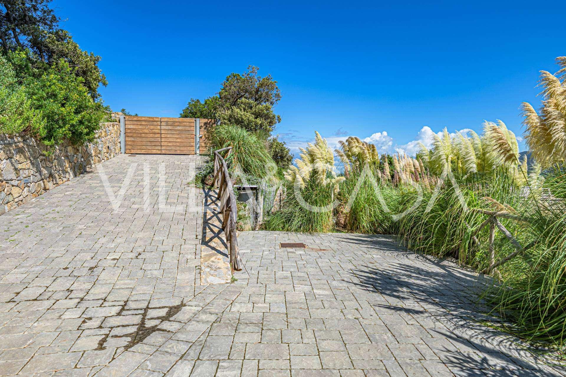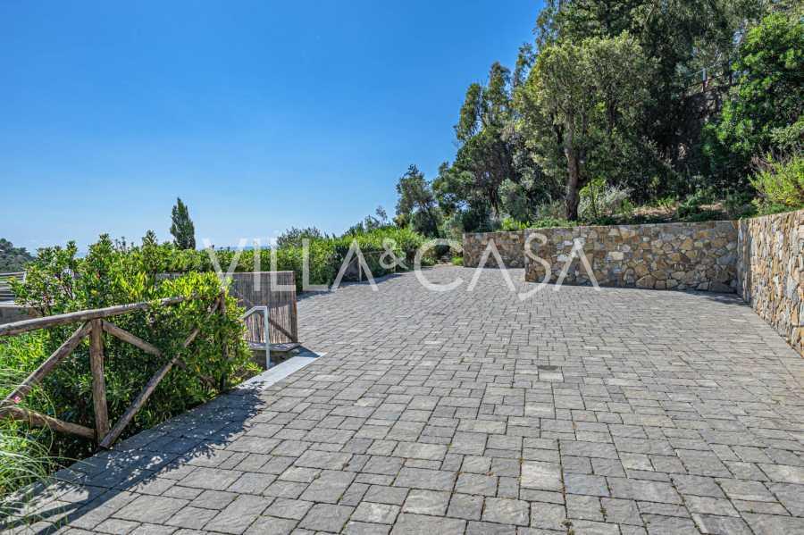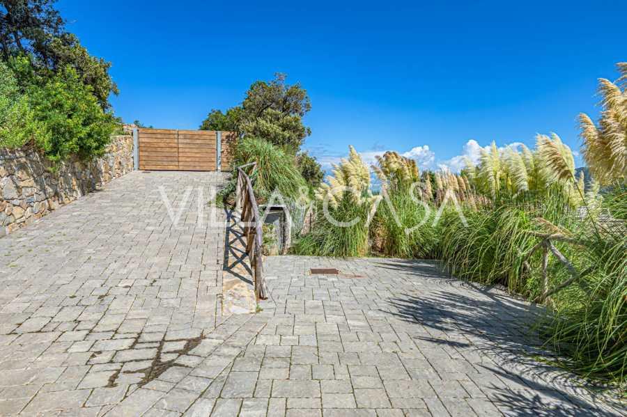 Der Zugang zum Gelände erfolgt durch ein elegantes privates Tor, das zu einem bequemen und abgelegenen Parkplatz führt. Eine von Grün umgebene Straße führt zum sicheren Eingang der Villa, die auf einer Ebene liegt, was Funktionalität und Raumkontinuität gewährleistet.
