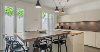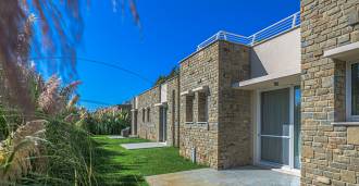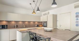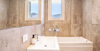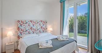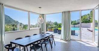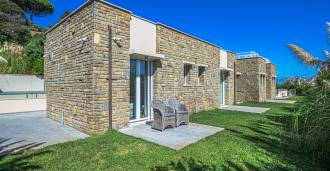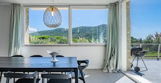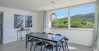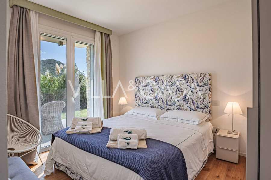 Die Fassaden aus Stein und Putz fügen sich harmonisch in die mediterrane Landschaft ein. Das helle Wohnzimmer mit großen Fenstern und sonniger Beleuchtung geht nahtlos in die Küche mit Essbereich über, die auf den Innenhof blickt. Der Schlafbereich umfasst vier Doppel- und ein Einzelzimmer, jedes mit eigenem Badezimmer.