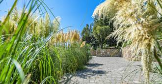 Der private Park mit einer Fläche von 4000 Quadratmetern ist vollständig eingezäunt und schön gestaltet. Mediterrane Vegetation wechselt sich mit Palmen und hellen Blumen ab und schafft eine exotische Atmosphäre.